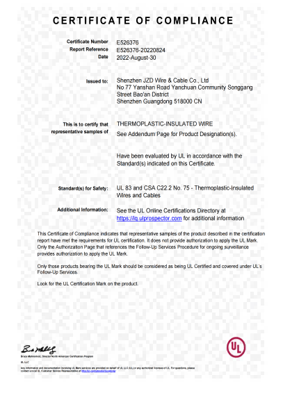 深圳建圳達(dá)電線電纜有限公司,成立于2000年,是一家電線電纜制造商,我們通過了世界各地不同市場的多數(shù)認(rèn)證,如:CCC、RoHS、CB、SAA、TUV、VDE、PSE、BPS、UL、CSA。我們根據(jù)定制產(chǎn)品不斷更新新的認(rèn)證。經(jīng)過數(shù)十年的發(fā)展,我們與來自世界各地的客戶建立了長期的合作關(guān)系。我們曾經(jīng)是菲律賓機(jī)場,,柬埔寨的電力站,美國的醫(yī)院,工廠,埃塞俄比亞的水電站項目。我們是一家值得信賴的電線供應(yīng)商。